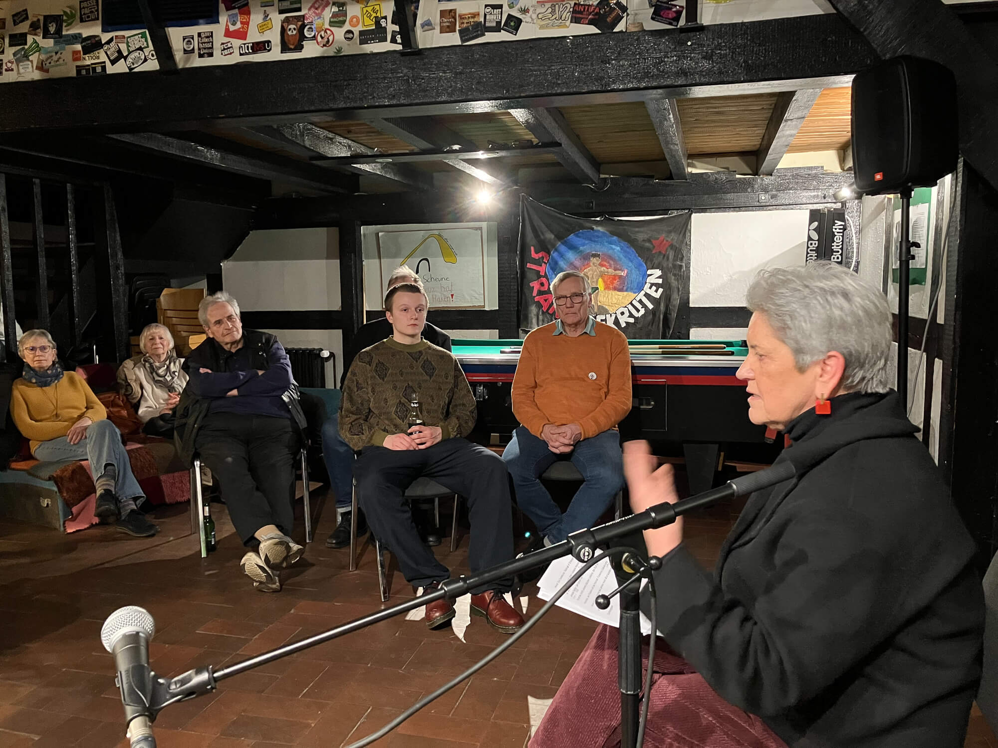 Im vierten Teil der Vortragsreihe gab die Radio-Journalistin Libuše Černá Einblicke, wie (neu)ankommende Menschen Gesellschaften und Zugehörigkeiten wahrnehmen. Sie stand zwölf Jahre dem Bremer Rat für Integration vor und gründete das globale° Festival für grenzüberschreitende Literatur.
