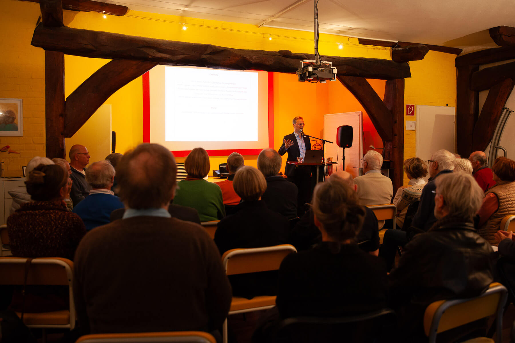 Dr. Jonas Niemann stellte zunächst die Biografien seiner Großeltern Charlotte und Walter Niemann vor. Sein Vater Sebastian Niemann gab anschließend Einblicke in das Familienleben im Hoetgerhaus. Den Abschluss bildete eine Lesung der Erinnerungen von Ilse Vauk, die ebenfalls im Haus gewohnt hatte. Der Veranstaltung angegliedert ist eine Ausstellung von Werken Walter Niemanns in der Lilienthaler Kunststiftung: „Walter Niemann – Der Tausendsassa aus Worpswede“ vom 16. November 2025 bis 12. April 2026.
